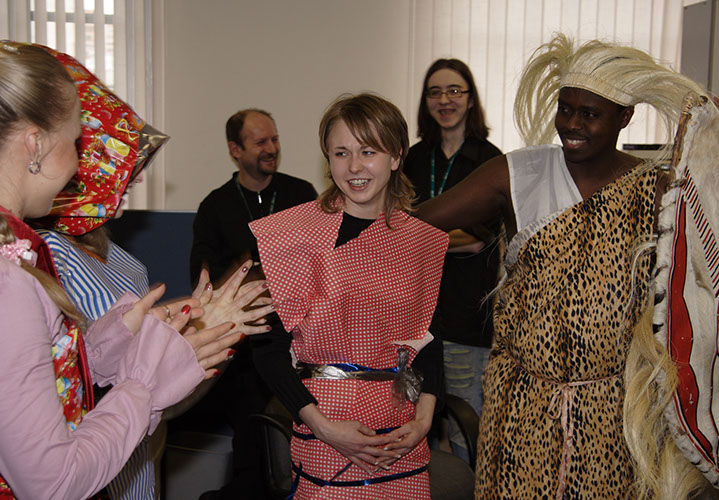поздравление сотрудниц компании с 8 Марта в офисе заказчика.